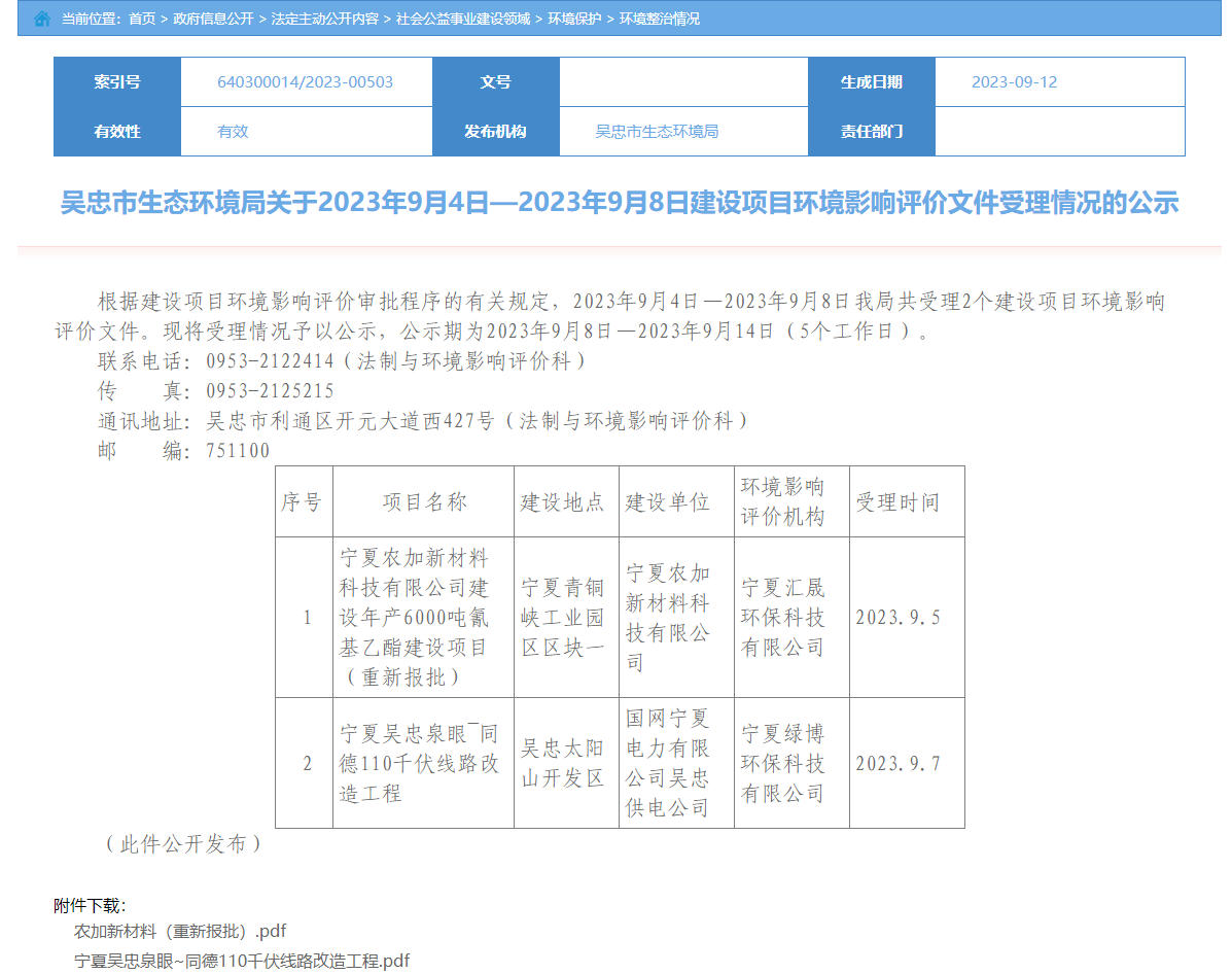 寧夏農加新材料科技有限公司建設年產6000噸氰基乙酯建設項目環(huán)境影響評價(重新報批)